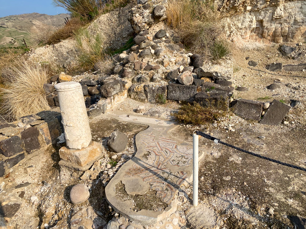The mosaic floor of the Holy Rock Church. This is where, according to tradition, Jesus encountered the man possessed by devils.