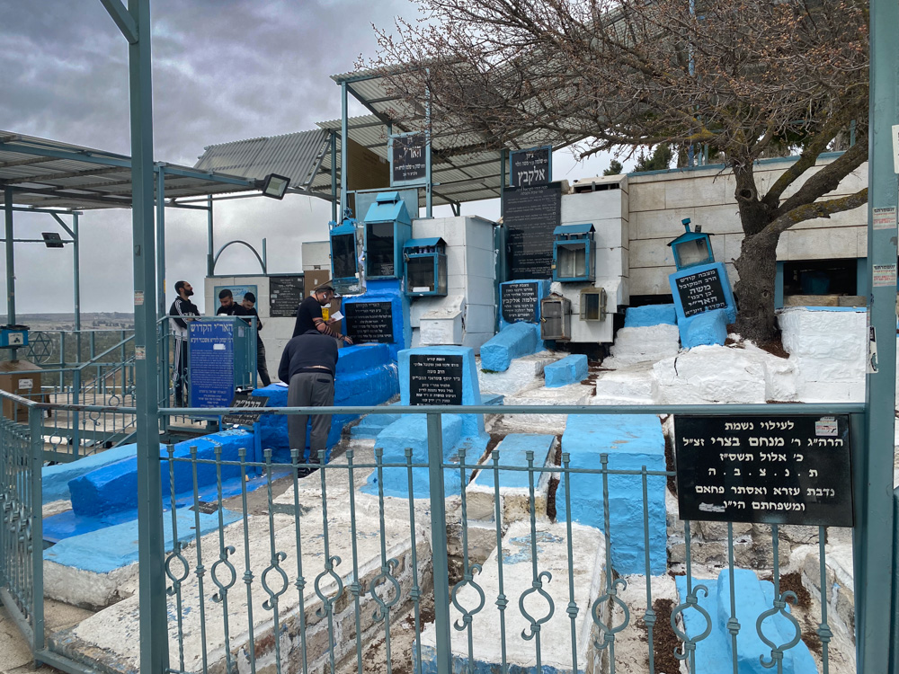 View north: The blue graves in the Safed cemetery belong to Holy Men, or Tzadikim (םיקידצ means “righteous” in Hebrew). Holy men are those who don’t have evil inclinations.