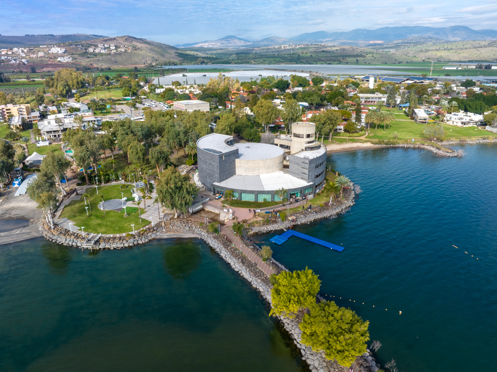 View southeast: The Yigal Allon Center houses the Galilee Boat, a museum (see below), and an exhibition called the Sanhedrin Trail.