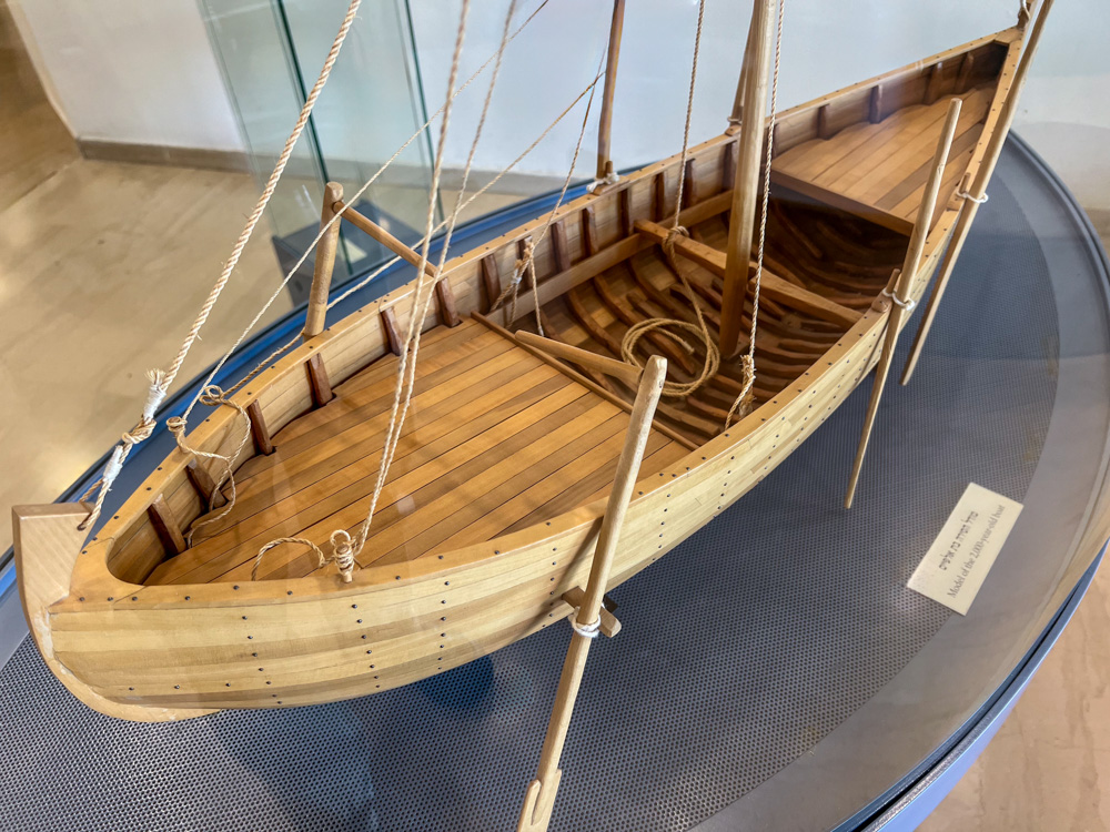 This is a replica of the ancient Galilee Boat, also called the “Jesus Boat” because it sailed on the lake in the first century AD. There is no evidence it was used by Jesus.